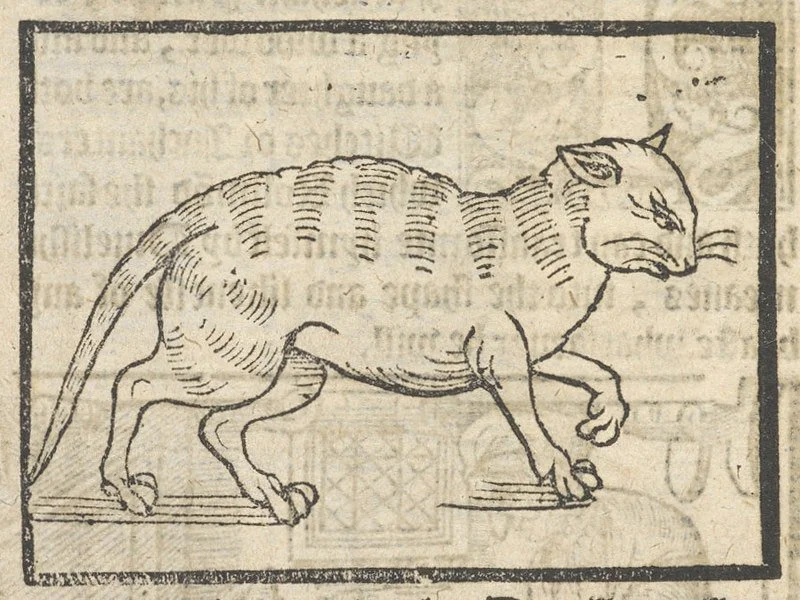 Cat pictured in A Rehearsall both Straung and True, of Hainous and Horrible Actes Committed by Elizabeth Stile (1579).