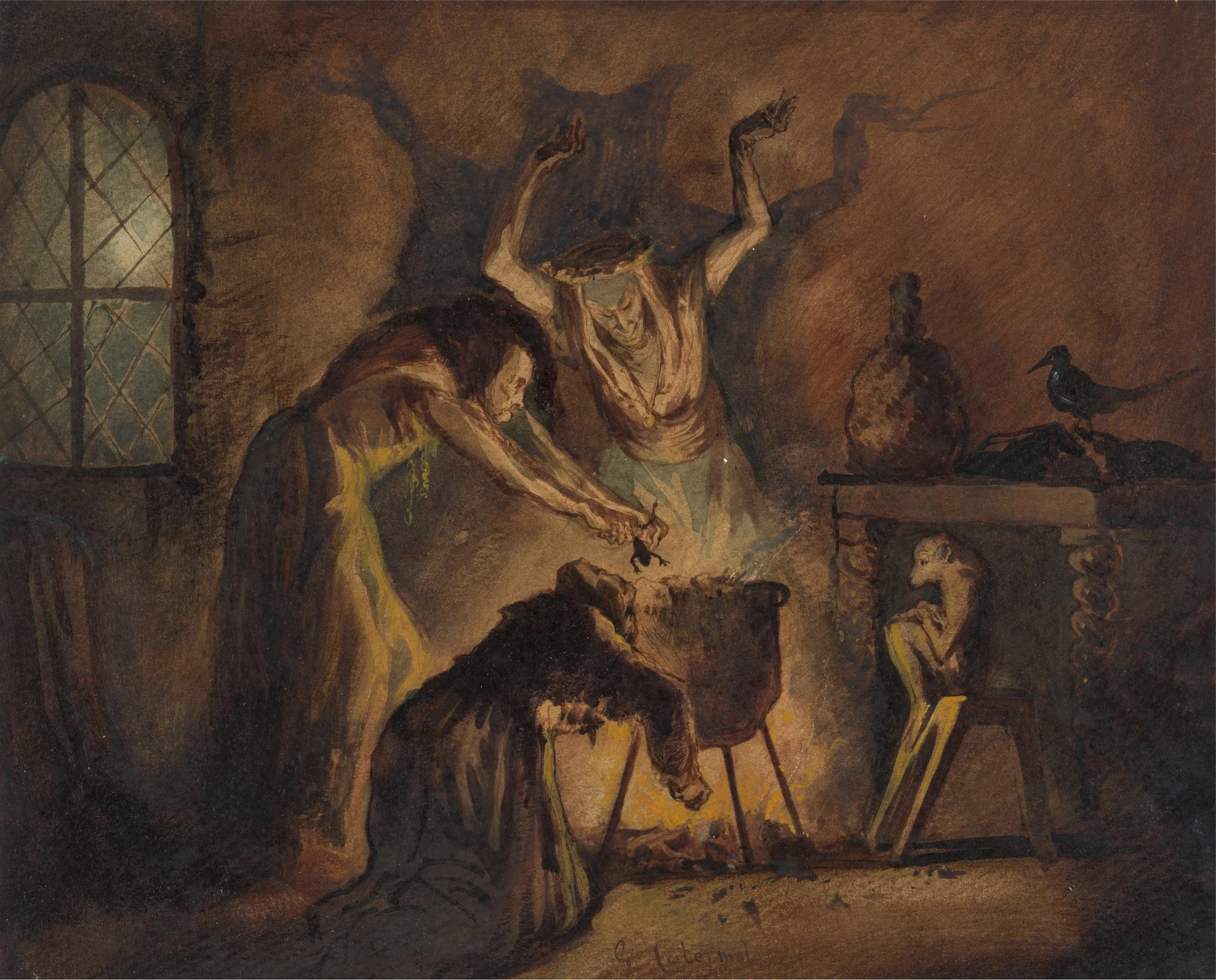 Scene of Three Witches from Shakespeare's Macbeth by George Cattermole.