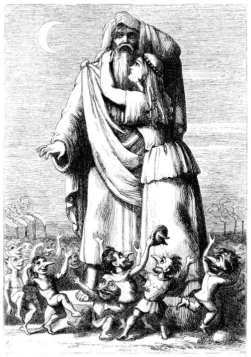 “The Feast of the Dwarfs” is presented here as it appeared in Anthony R. Montalba’s 1849 collection Fairy Tales from All Nations, a book that freely blended authentic folk material with the tastes and moral expectations of Victorian England. The tale’s core, fleeing lovers, a hidden cave, dwarfs celebrating Yule, and a giantess mourning her stone-bound husband, comes from older Icelandic and Norwegian tradition, where such beings belong to a richly animistic world. But in Montalba’s retelling, these pre-Christian figures are reframed through a distinctly 19th-century Christian sensibility: the sign of the cross breaks ancient magic, a “holy man” triumphs over giants, and pagan worlds collapse at the sound of Christian blessing. What follows, then, is less a pure Icelandic legend than a Victorian interpretation of one, an intriguing window into how folklore was reshaped, moralized, and re-imagined during the period.